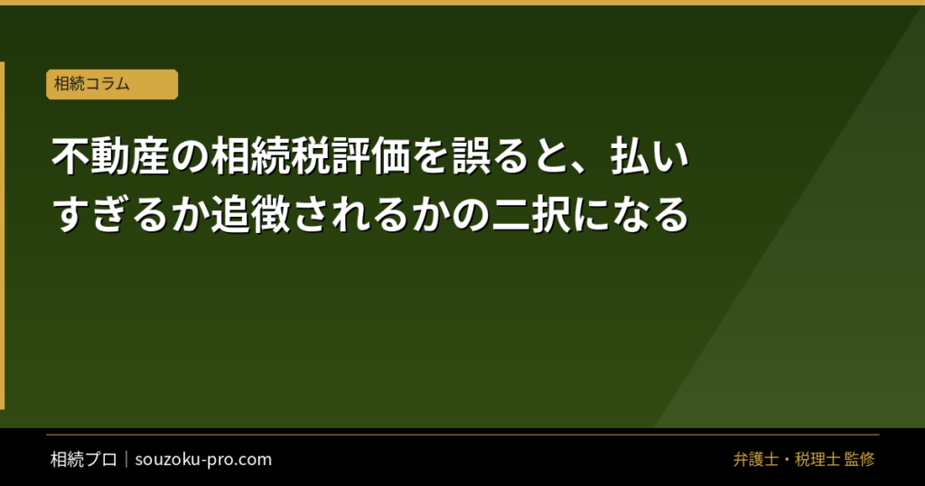 結論から言うと、不動産の相続税評価を誤ると、過大評価による相続税の払いすぎ、または過小評価による税務当局からの追徴課税のいずれかが生じる可能性があり、正確な評価が不可欠とされています。